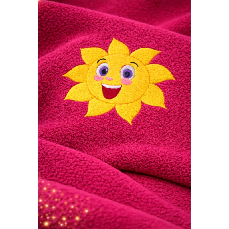 Pod słoneczkiem przewidziane jest miejsce na wyhaftowanie imienia dziecka. Dzięki temu ręcznik nie pomyli się z żadnym innym, a jego właściciel z dumą będzie sięgać po swój własny, oznaczony ręcznik każdego dnia.