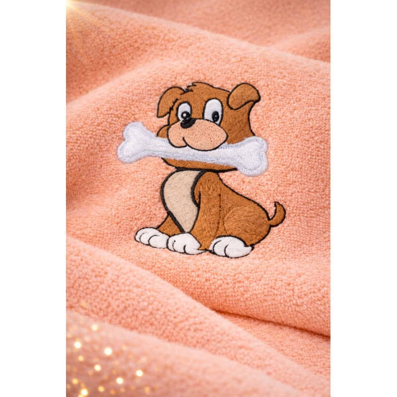 Uśmiechnięty piesek trzymający kość to wzór, który podbija dziecięce serca. Delikatny, kolorowy haft przyciąga wzrok. Dzięki personalizacji imieniem ręcznik staje się jeszcze bardziej osobisty. Twoje dziecko będzie dumne ze swojego wyjątkowego prezentu! 🎈