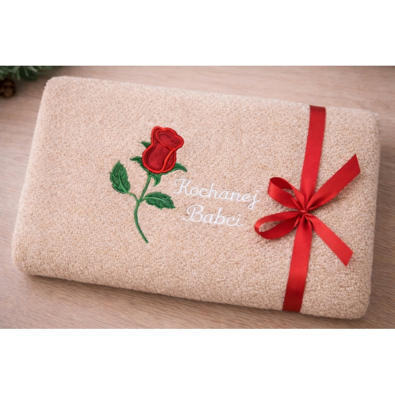 Nasz ręcznik z piękną różą dla Babci to wyraz głębokiej wdzięczności i szacunku. Róża, symbol piękna, miłości i honoru, jest tutaj delikatnie haftowana, dodając elegancji i stylu. Taki ręcznik to nie tylko codzienna przyjemność, ale również trwałe przypomnienie o wyjątkowej relacji i miłości, jaką wnuki darzą swoją babcię.